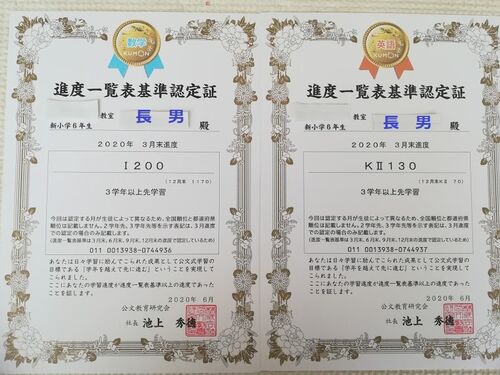 先日、子供たちが公文教室から「進度一覧表基準認定証」をもらって帰りました。 今回の進度は2020年3月末までの学習進度です。 今回は、子供たちの2019年度の当初の目標と比較した結果をまとめてみました。 2019年の子供たちの目標は? 長男の目標達成度は?…