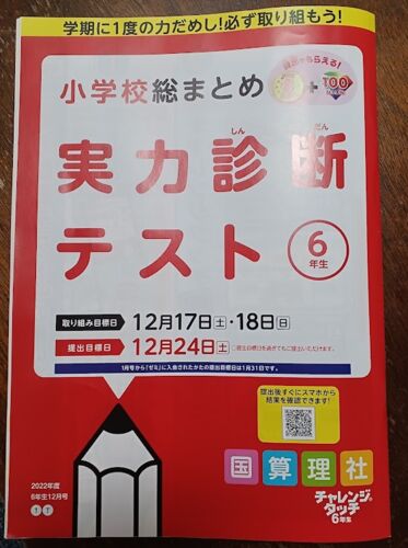 チャレンジタッチを受講中の長女。「6年生の冬の実力診断テスト」を提出しました。 チャレンジパッドでの提出は、結果がすぐにわかるのでとっても便利です。 今回は、提出した実力診断テストについて書いていこうと思います。 実力診断テストの問題は郵送で…