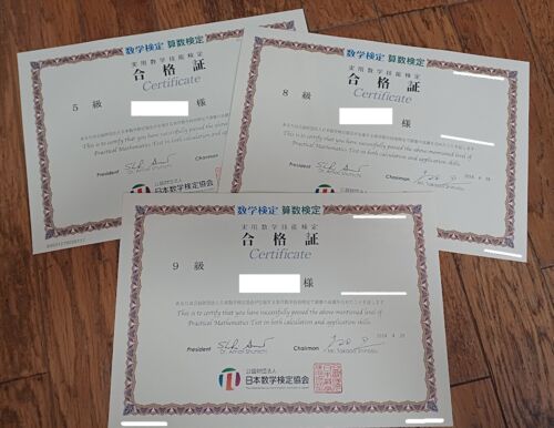 先月子供たちは、年度末の恒例行事になっている数学検定&算数検定を受検してきました。 いつもなら3月に行われていましたが、今回は4月の上旬に実施されました。 その結果が返って来たので、今回は結果について書いていこうと思います。 次女の結果は? 次…