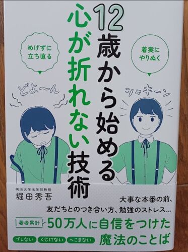 旦那から「良い本があるんじゃけど、読んでみて!」と勧められて、『12歳から始める心が折れない技術』(著/堀田秀吾)という本を読んでみました。 今回は、この本について書いていこうと思います。 始めの印象は【子育てに役立ちそう!】 本の構成は? 子ど…