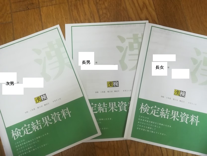 受験日からの約1か月後、子供たちがそれぞれ漢検の結果をもらってきました!